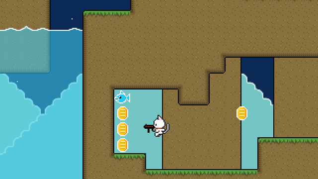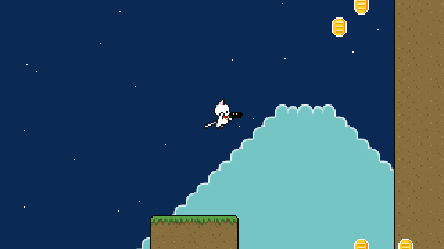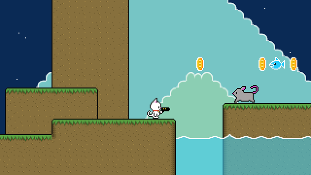 Bullet Cat was created in less than a month during July 2015. It features mostly stock graphics, sounds, and music in an excitingly generic shooty platforming game!